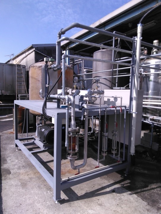 With the cooperation of Nishida Shoun Co., Ltd. (Head Office: Shingu-cho, Kasuya-gun, Fukuoka Prefecture, President: Masumi Nishida), we worked on demonstration evaluation and data collection, and completed the development of new technology. We have developed a purification system (patent pending) to produce high-quality biodiesel fuel by using solvent-resistant membrane, and it is scheduled to be launched in September 2022. Compared to the conventional "distillation method", it is more efficient with less enerygy and environmental friendly method.