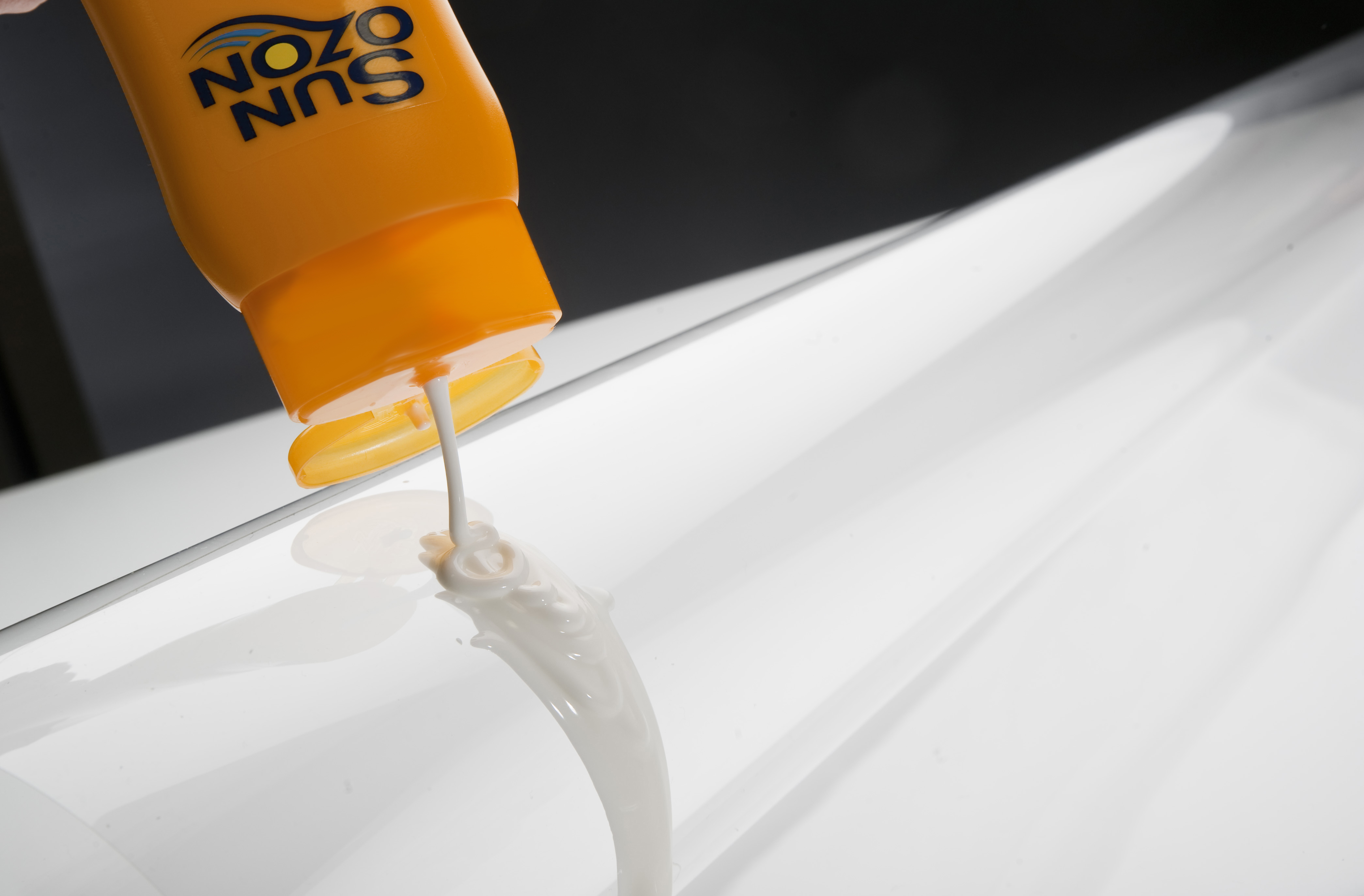 内装材向けのサンスクリーン試験で実証されたこの耐薬品性は、耐擦傷性と並んで自動車等の内装部品にも要求される特性です。